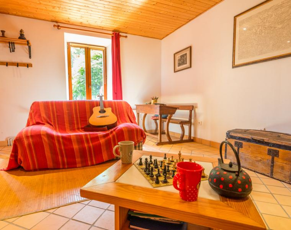 -Au RDC, d’un vaste salon lumineux , séparé du reste de la pièce par un bar, salle à manger équipée d’une grande table de ferme, et d'un large coin cuisine équipé (placard, frigo/congélateur, plaques de cuisson et leur hotte aspirante, four électrique, micro-ondes,TV+DVD,chaîne hifi, accès internet qui peut être instable). Vous pourrez profiter du poêle Godin