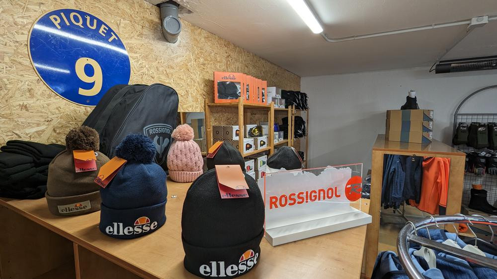 Store for the rental and sale of all-season sports equipment (skis, snowboards, mini skis, sleds, toboggans, poles, clothing, shoes, accessories, etc.).