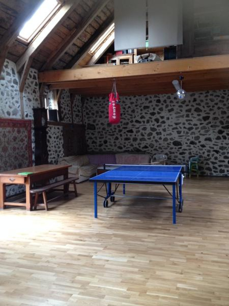 Le jardin clos, partagé avec nous et notre gentil chien offre une balançoire et un trampoline. Une place de parking vous est réservée dans la cour et un parking public se trouve à quelques mètres. Vous avez libre accès à la grange-salle de jeux (partagée avec nous, environ 90 m2 non chauffée) équipée d'une table de ping-pong et de divers jeux. La terrasse couverte est équipée de meubles de jardin, barbecue.