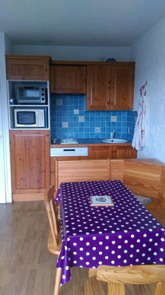 Studio situé au coeur de la station, au pied des pistes pouvant accueillir 3 personnes.A l'entrée, lits superposés 90 cm et clic clac 130 dans le séjour. Casier à skis.